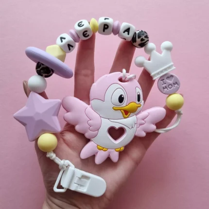 Чарівний дитячий гризунець із харчового силікону у вигляді лисички— чудовий супутник для вашого малюка під час прорізування зубів. М’яка текстура силікону дбайливо масажує ясна, допомагаючи полегшити біль. Головним елементом цього гризунця є мила лисичка, яка викликає посмішку у дітей. Ви можете обрати бусини та декоративні елементи на свій смак, щоб створити унікальний аксесуар для вашого малюка. Всі деталі виготовлені з безпечного, нетоксичного матеріалу, що відповідає найвищим стандартам якості. Іменна персоналізація додає особливої індивідуальності, роблячи цей гризунець ідеальним подарунком.