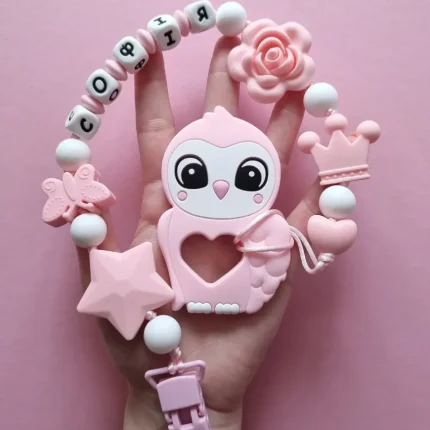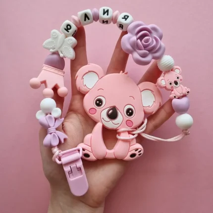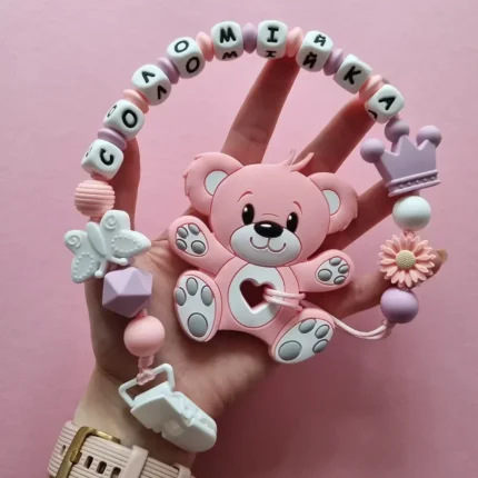 Чарівний дитячий гризунець із харчового силікону у вигляді ведмедика— чудовий супутник для вашого малюка під час прорізування зубів. М’яка текстура силікону дбайливо масажує ясна, допомагаючи полегшити біль. Головним елементом цього гризунця є миле ведмежа, яке викликає посмішку у дітей. Ви можете обрати бусини та декоративні елементи на свій смак, щоб створити унікальний аксесуар для вашого малюка. Всі деталі виготовлені з безпечного, нетоксичного матеріалу, що відповідає найвищим стандартам якості. Іменна персоналізація додає особливої індивідуальності, роблячи цей гризунець ідеальним подарунком.