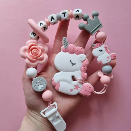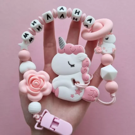 Чарівний дитячий гризунець із харчового силікону у вигляді ведмедика— чудовий супутник для вашого малюка під час прорізування зубів. М’яка текстура силікону дбайливо масажує ясна, допомагаючи полегшити біль. Головним елементом цього гризунця є миле ведмежа, яке викликає посмішку у дітей. Ви можете обрати бусини та декоративні елементи на свій смак, щоб створити унікальний аксесуар для вашого малюка. Всі деталі виготовлені з безпечного, нетоксичного матеріалу, що відповідає найвищим стандартам якості. Іменна персоналізація додає особливої індивідуальності, роблячи цей гризунець ідеальним подарунком.