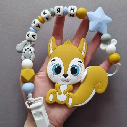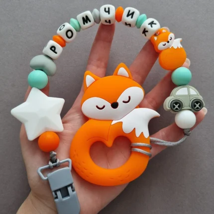 Чарівний дитячий гризунець із харчового силікону у вигляді коали— чудовий супутник для вашого малюка під час прорізування зубів. М’яка текстура силікону дбайливо масажує ясна, допомагаючи полегшити біль. Головним елементом цього гризунця є мила коала, яка викликає посмішку у дітей. Ви можете обрати бусини та декоративні елементи на свій смак, щоб створити унікальний аксесуар для вашого малюка. Всі деталі виготовлені з безпечного, нетоксичного матеріалу, що відповідає найвищим стандартам якості. Іменна персоналізація додає особливої індивідуальності, роблячи цей гризунець ідеальним подарунком.