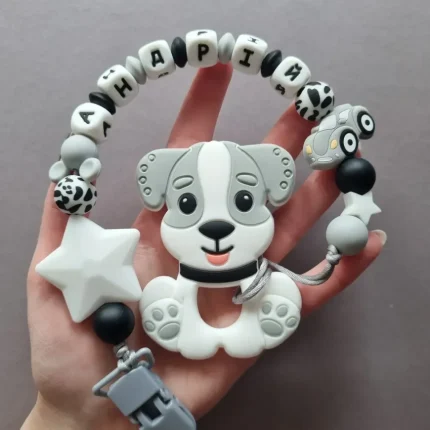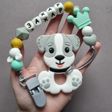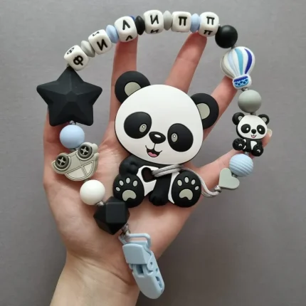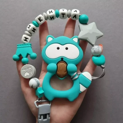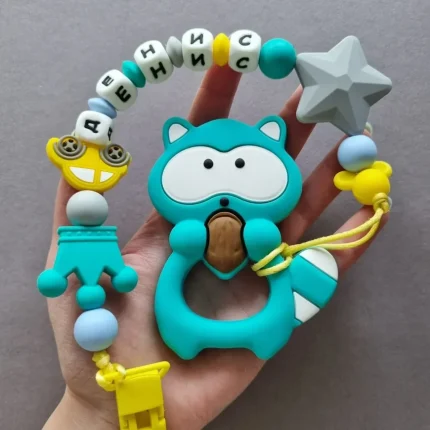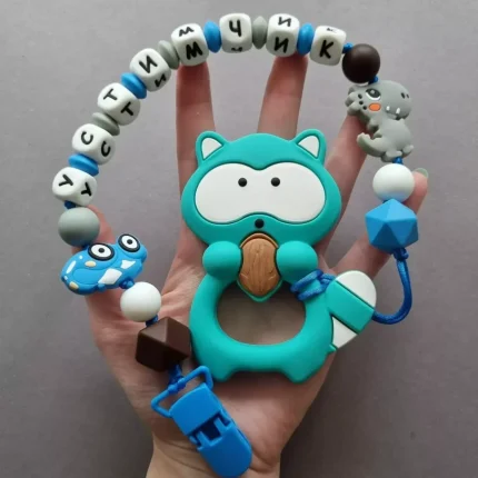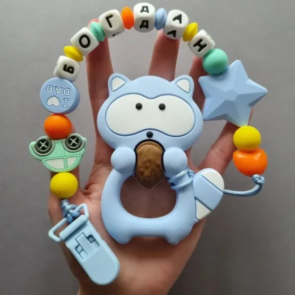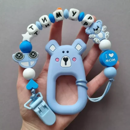 Чарівний дитячий гризунець із харчового силікону у вигляді ведмедика— чудовий супутник для вашого малюка під час прорізування зубів. М’яка текстура силікону дбайливо масажує ясна, допомагаючи полегшити біль. Головним елементом цього гризунця є миле ведмежа, яке викликає посмішку у дітей. Ви можете обрати бусини та декоративні елементи на свій смак, щоб створити унікальний аксесуар для вашого малюка. Всі деталі виготовлені з безпечного, нетоксичного матеріалу, що відповідає найвищим стандартам якості. Іменна персоналізація додає особливої індивідуальності, роблячи цей гризунець ідеальним подарунком.